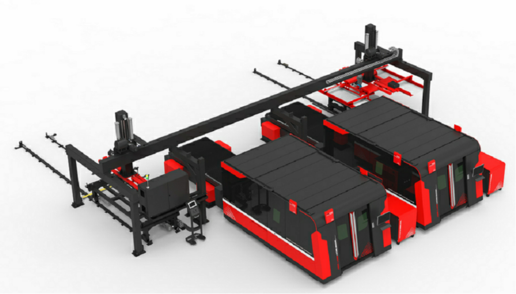 De acordo com as necessidades dos clientes, foram adotados um depósito de materiais tridimensional de torre dupla D-Tower-3015/10 e um robô de carregamento e descarga a laser D-Trans-3015/400, carrinho elétrico, corrimão de segurança e cortina de luz de segurança.